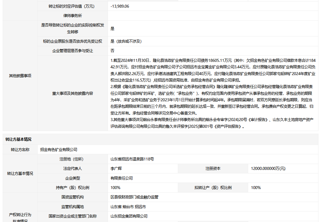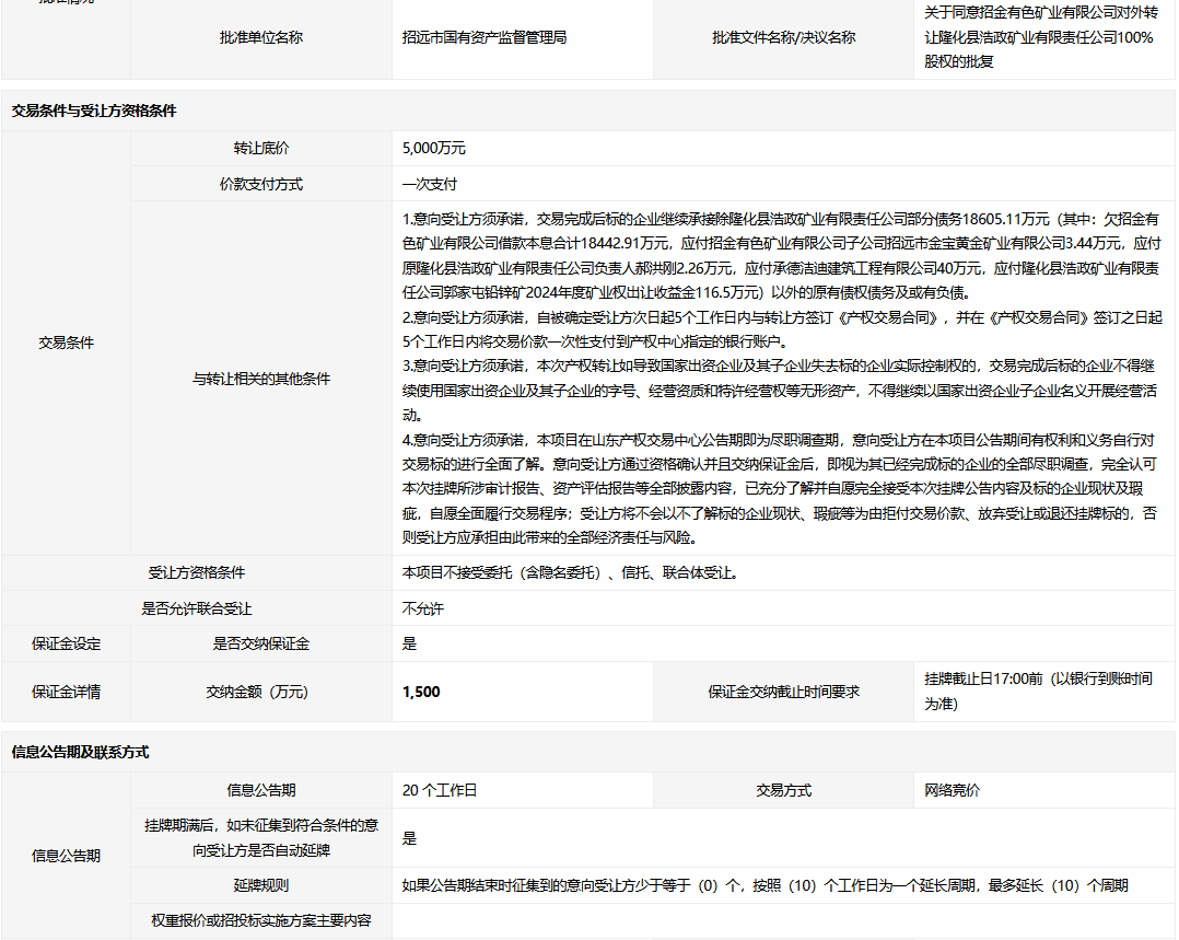 轉(zhuǎn)讓方:招金有色礦業(yè)有限公司