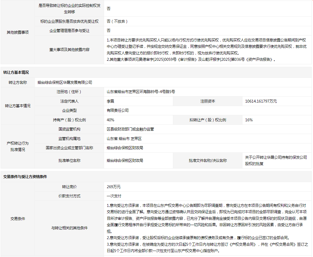 煙臺保稅開發(fā)投資有限公司16%國有股權