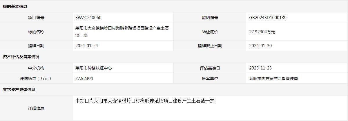 海陽市辛安鎮(zhèn)卓格莊村CX項目平整土地產(chǎn)生部分渣土一宗(3號標(biāo)的)交易公告