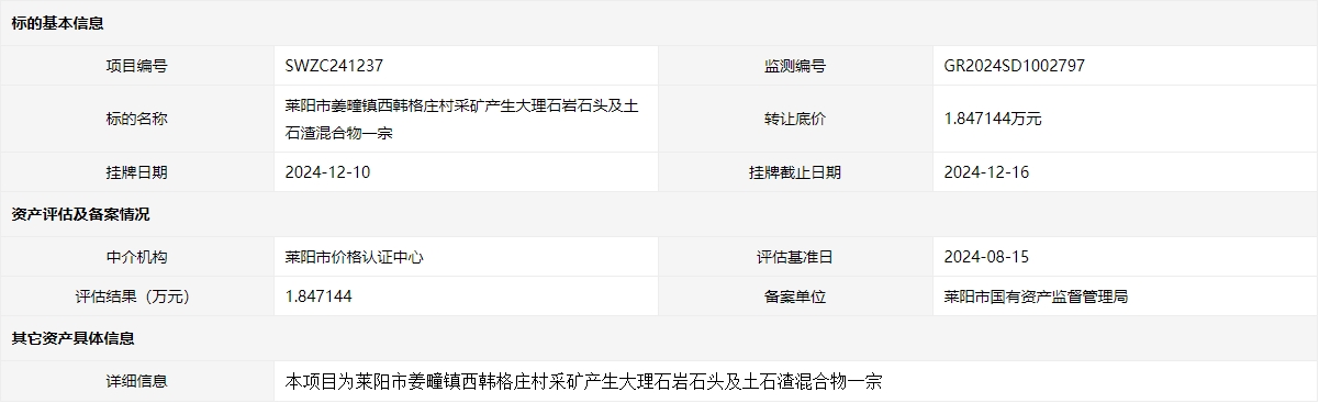 轉(zhuǎn)讓方:萊陽(yáng)市自然資源和規(guī)劃局
