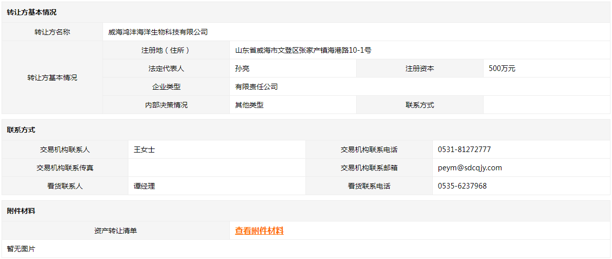 • 轉(zhuǎn)讓方:威海鴻灃海洋生物科技有限公司