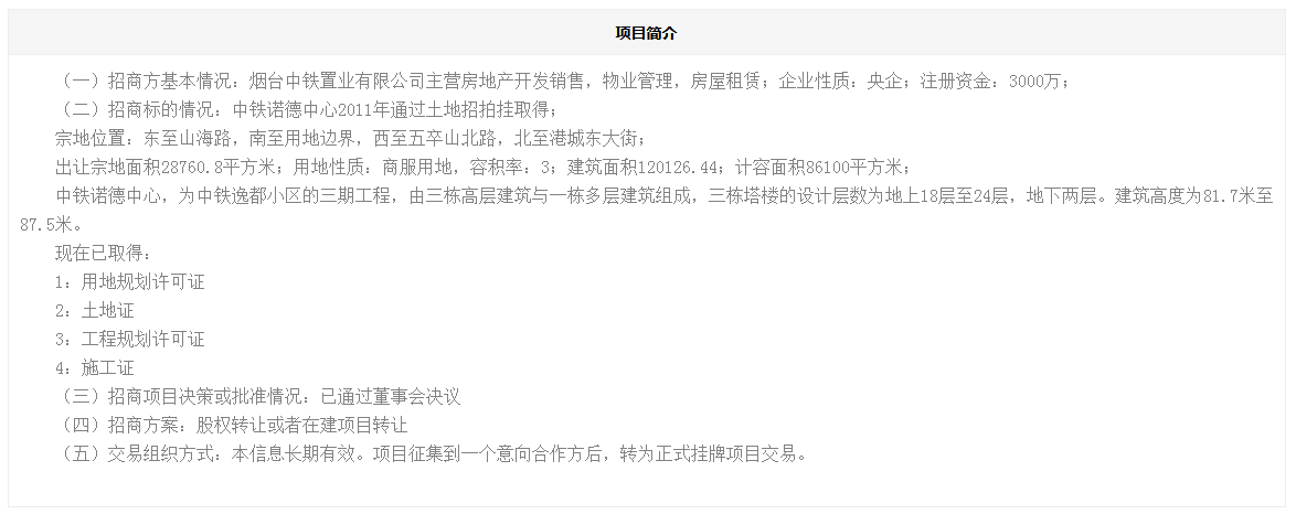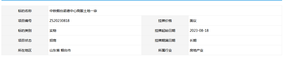 中鐵煙臺(tái)諾德中心商服土地一宗