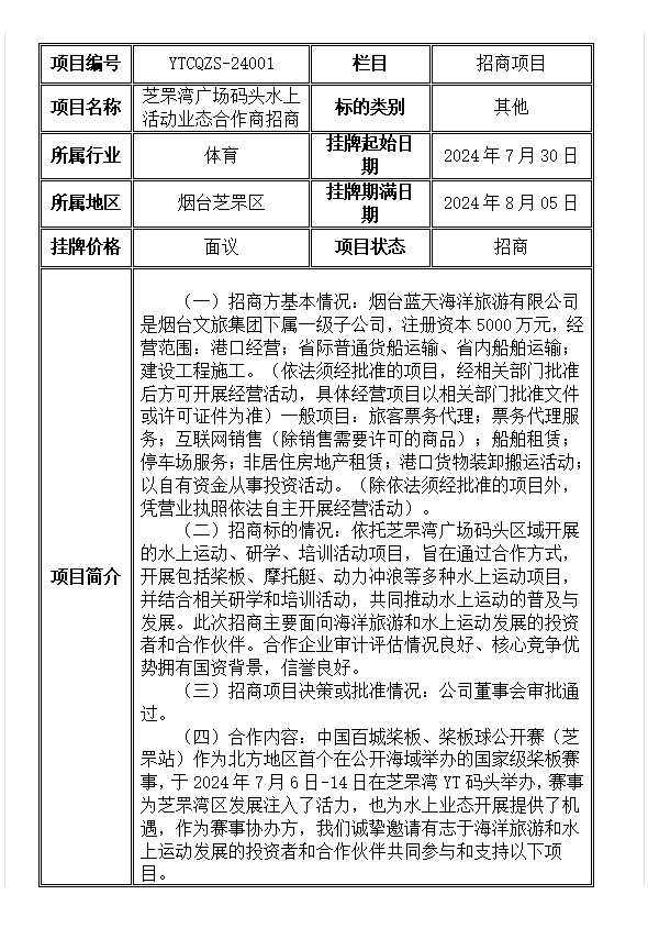 • 掛牌起止日期:2024年7月30日至2024年8月5日