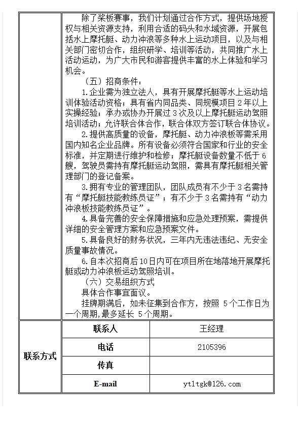 芝罘灣廣場碼頭水上活動(dòng)業(yè)態(tài)合作商招商