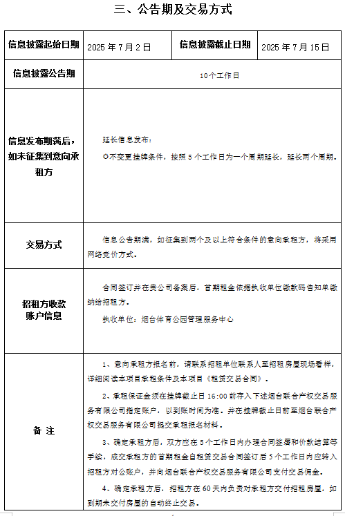 • 掛牌起止日期:2025年7月2日至2025年7月15日